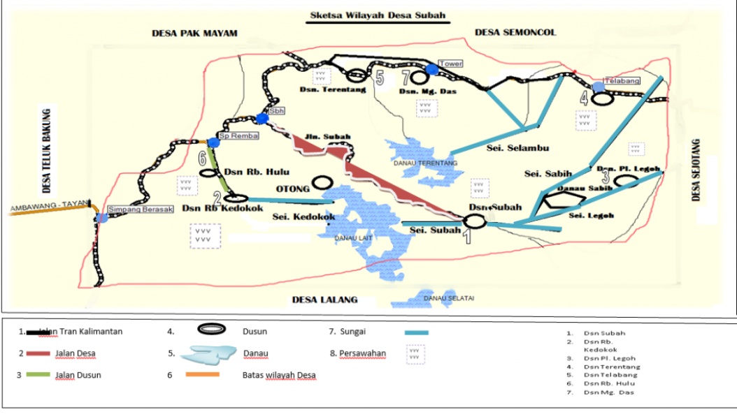 - Sebelah Selatan Desa Subah berbatasan dengan Desa Lalang Kecamatan Tayan Hilir Kababupaten Sanggau